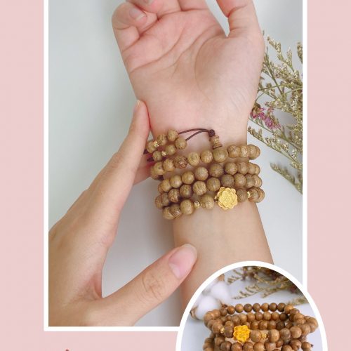 Vòng Trầm 6li 108 hạt phối charm sen vàng 24k