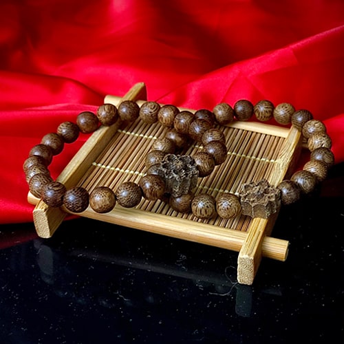 Vòng Trầm Hương 6 li 108 hạt phối charm sen chu sa